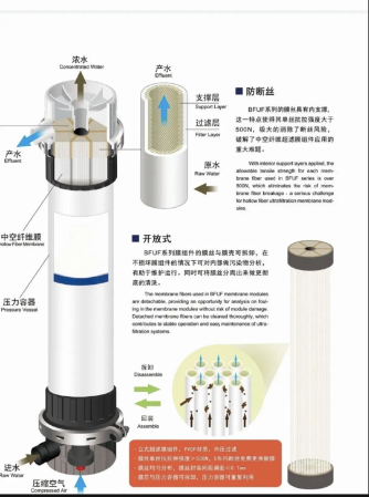 نوع فشار داخلی: آب خام از داخل غشا به بیرون جریان می یابد، مناسب برای کیفیت آب با کدورت بالا.